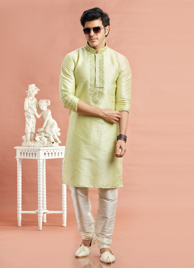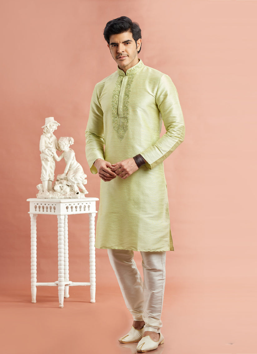 Pastel Green Banarasi Art Silk Embroidered Kurta Pajama Set