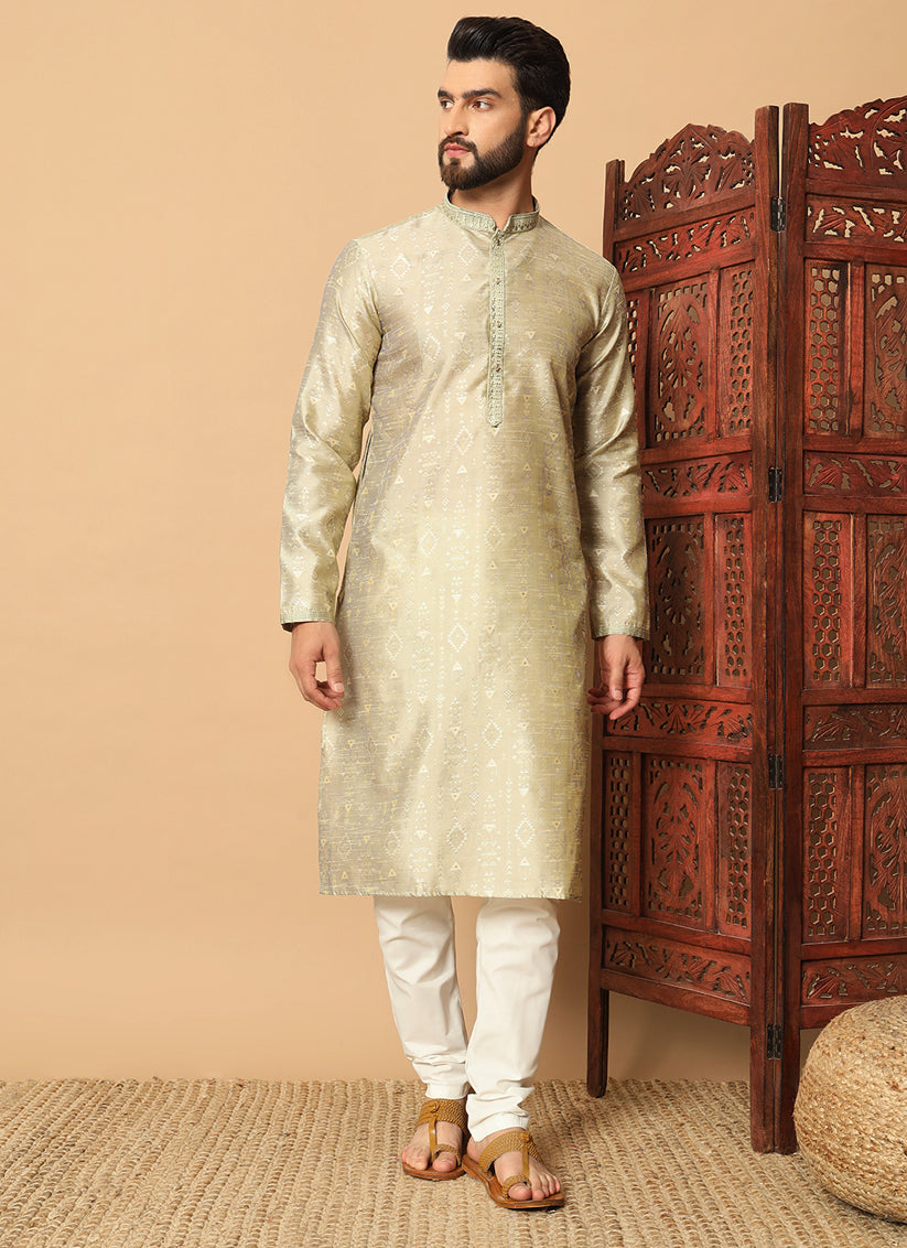 TDO251501-1Pastel Green Jacquard Men Kurta Set for Festival