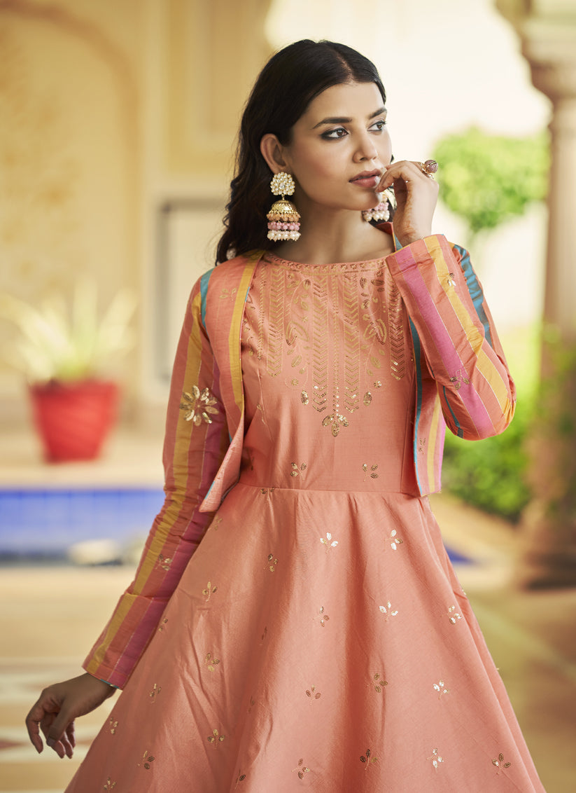 Fabric: Gown - Cotton, Inner - Silk Crepe, Jacket - Cotton