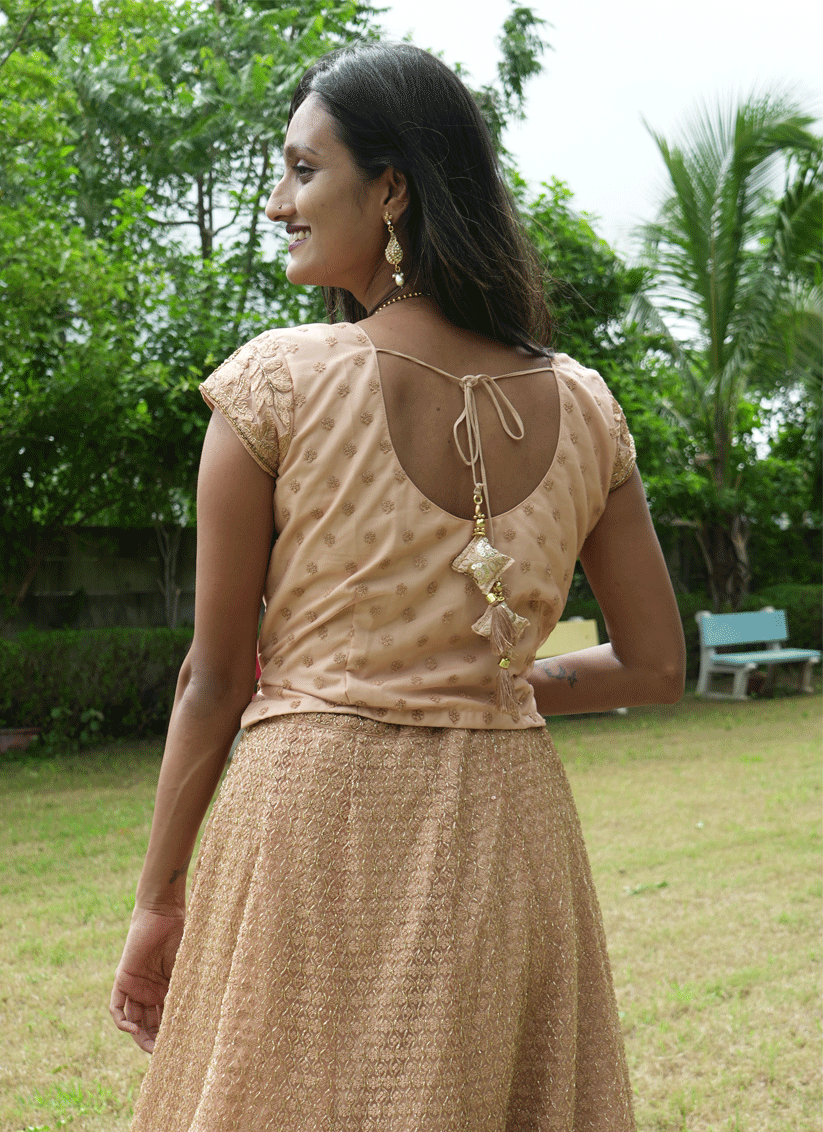 You will be asked for measurements via email or phone. (It applies to the custom stitching like Saree blouse and Lehenga Choli Stitching)