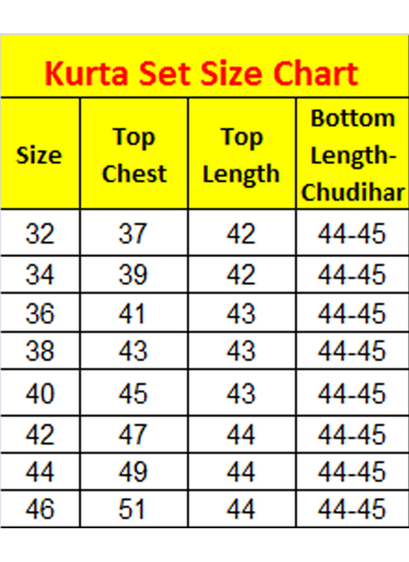 SIZE CHART- Salwar Suits, Kurties, Palazzo Suits, Anarkali Suits, Pant Kameez Set | |||