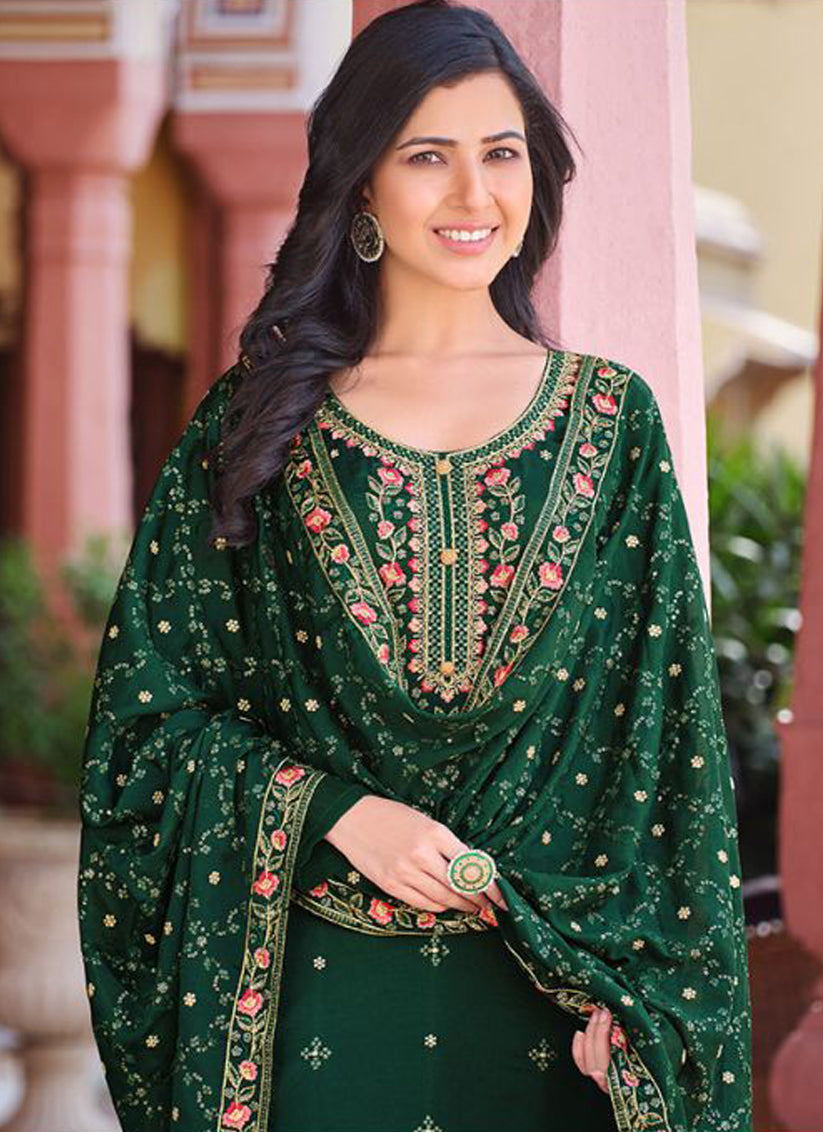 Pine Green Chinnon Embroidered Ready Made Pant Kameez