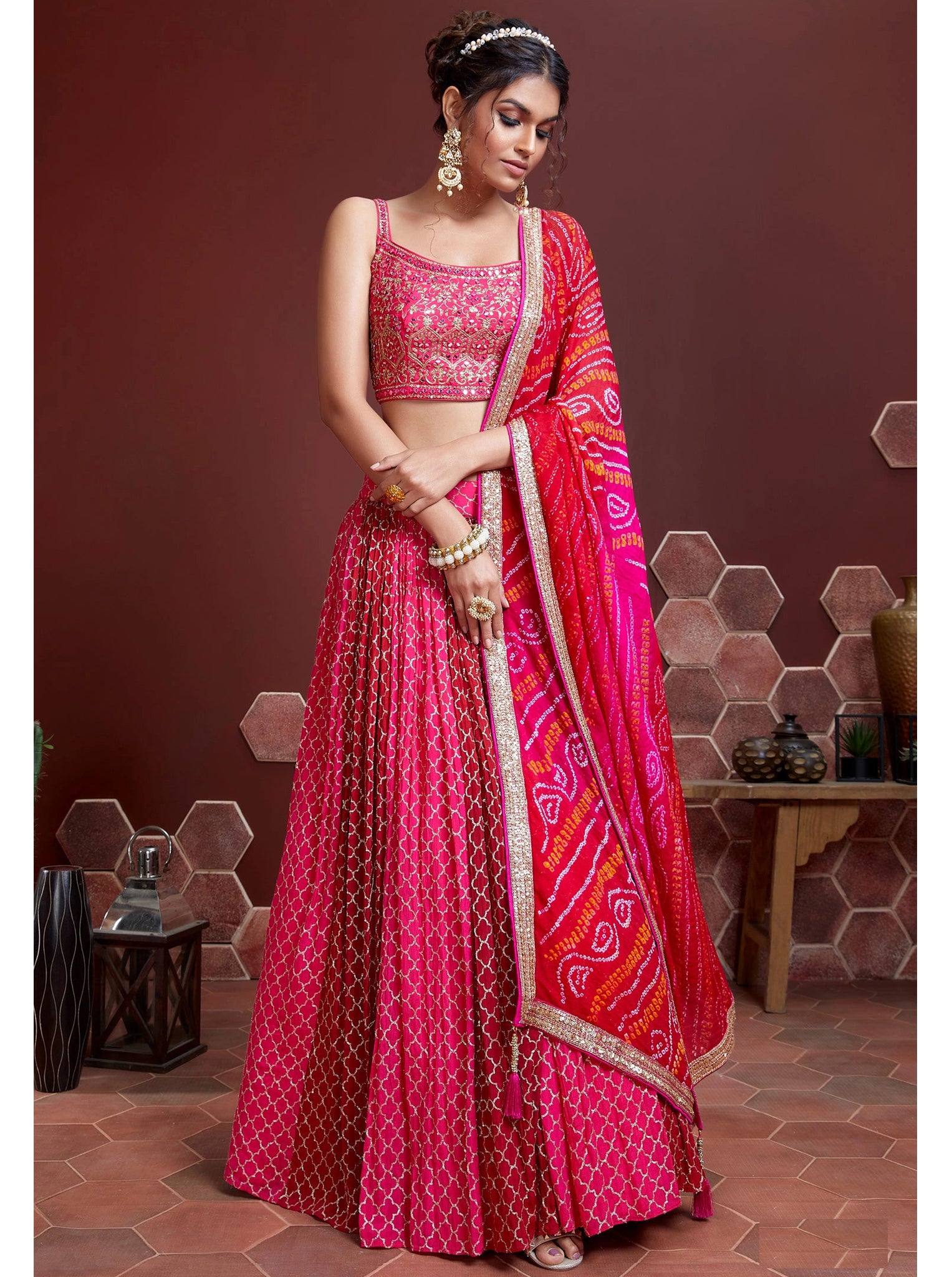 Pink Pure Chinnon Silk Embroidered Wedding Lehenga Choli