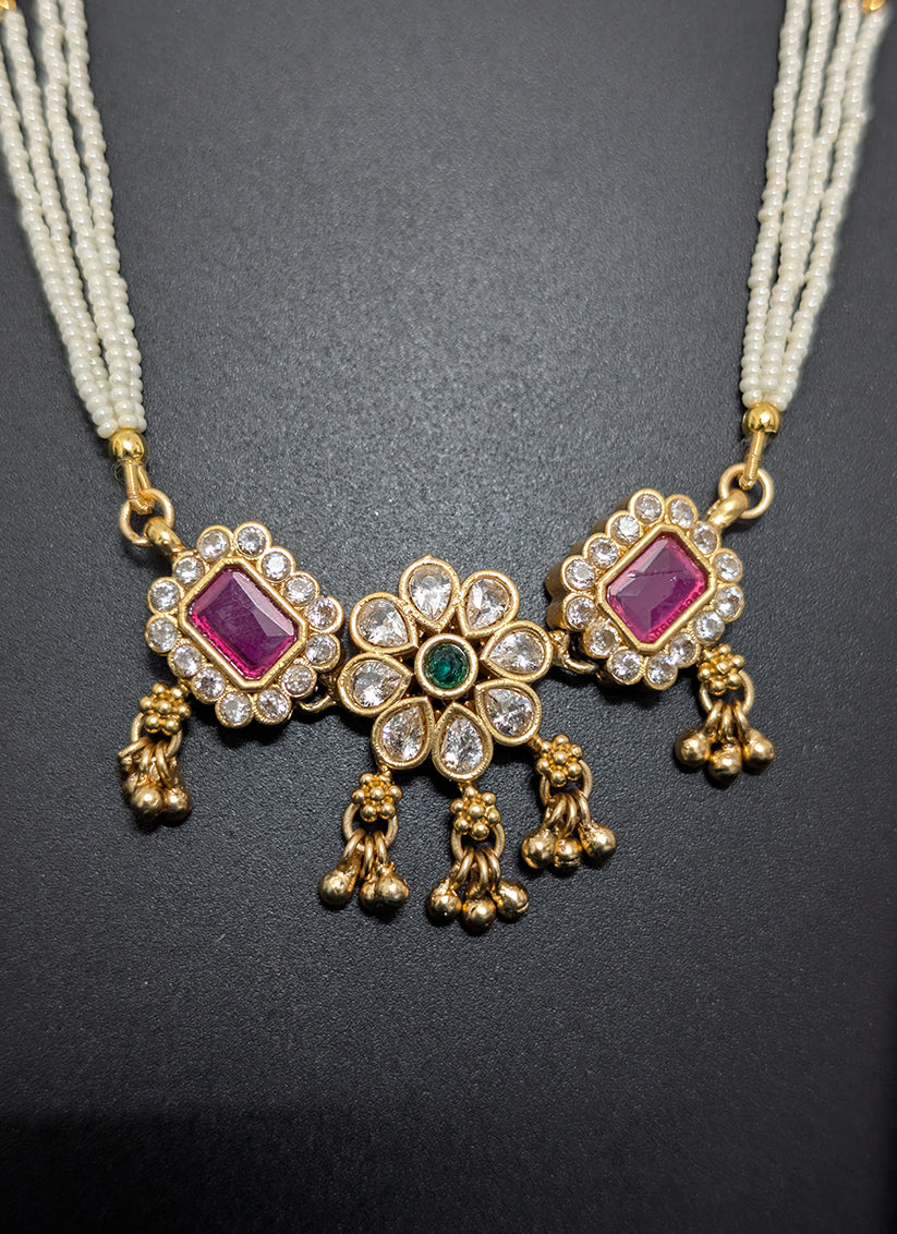 TDO253624Precious White Pearl 4 String Long Necklace Set