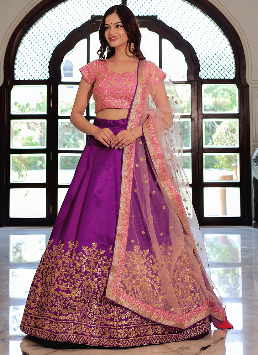 Purple Embroidered & Heavy Sequins Lehenga Choli Set