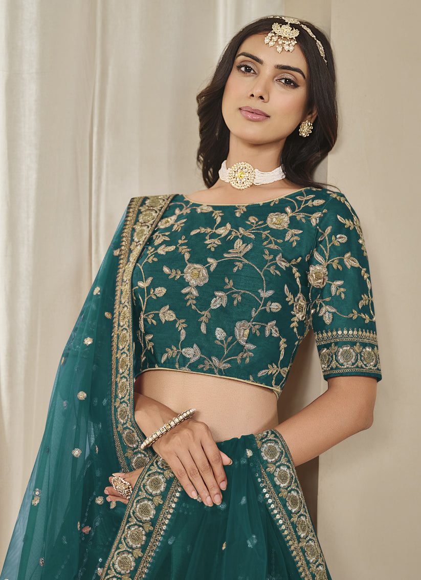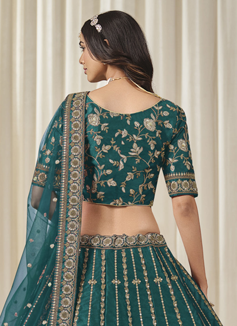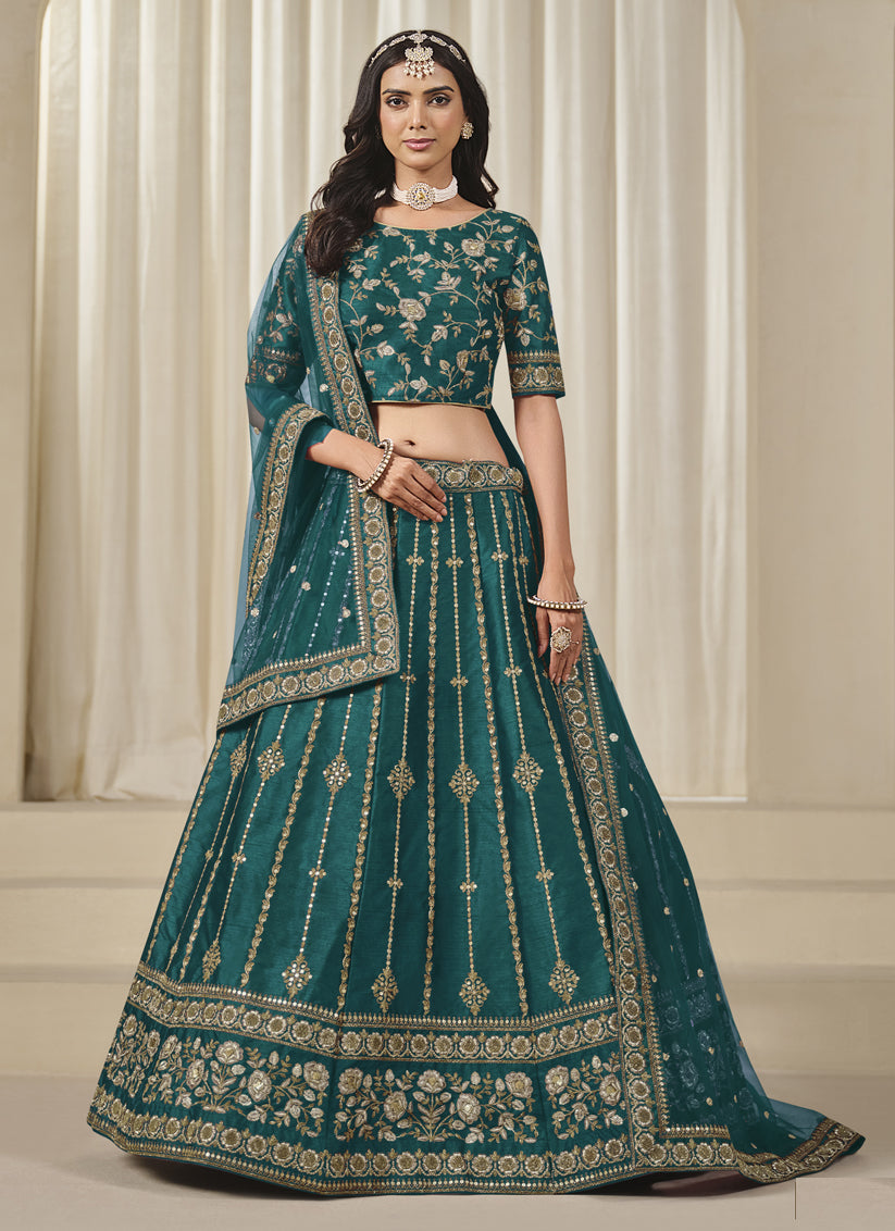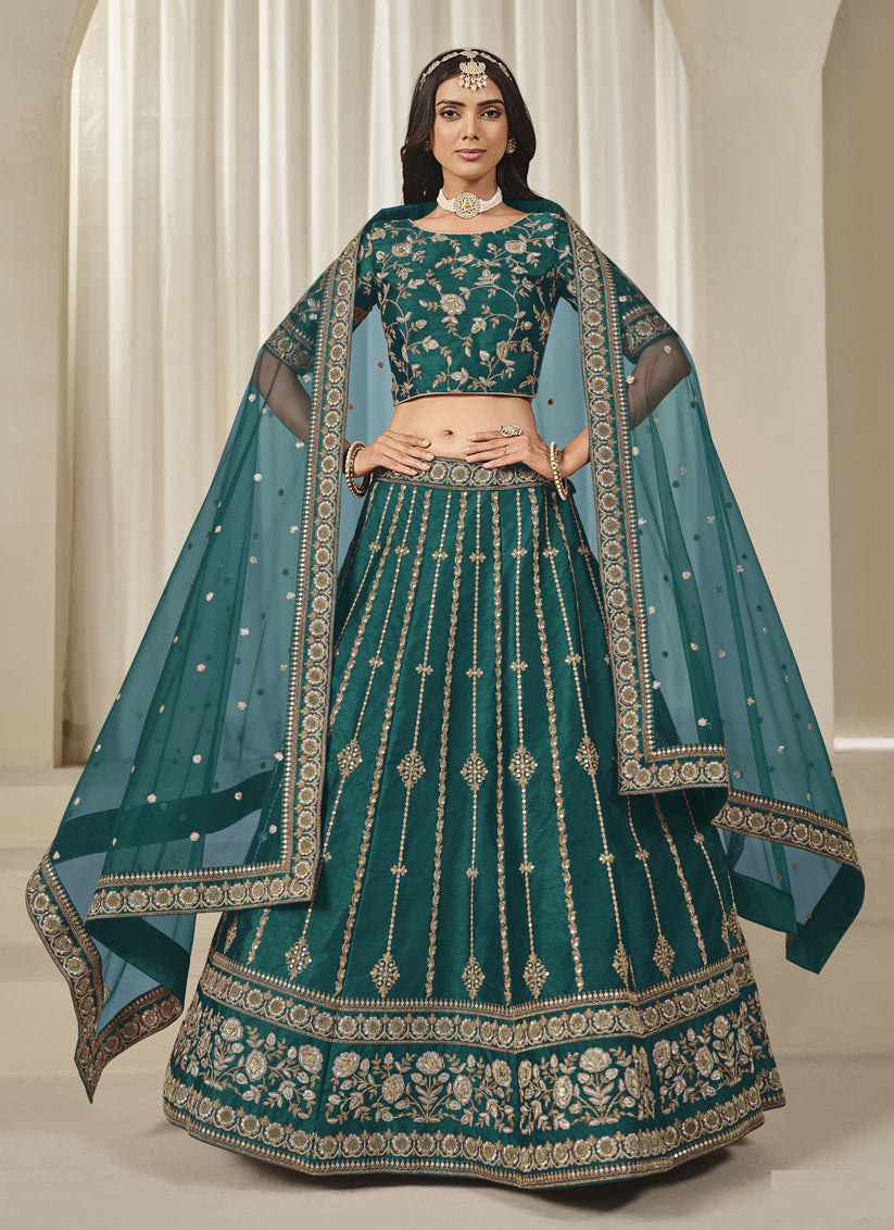 Rama Green Art Silk Embroidered Lehenga Choli Set
