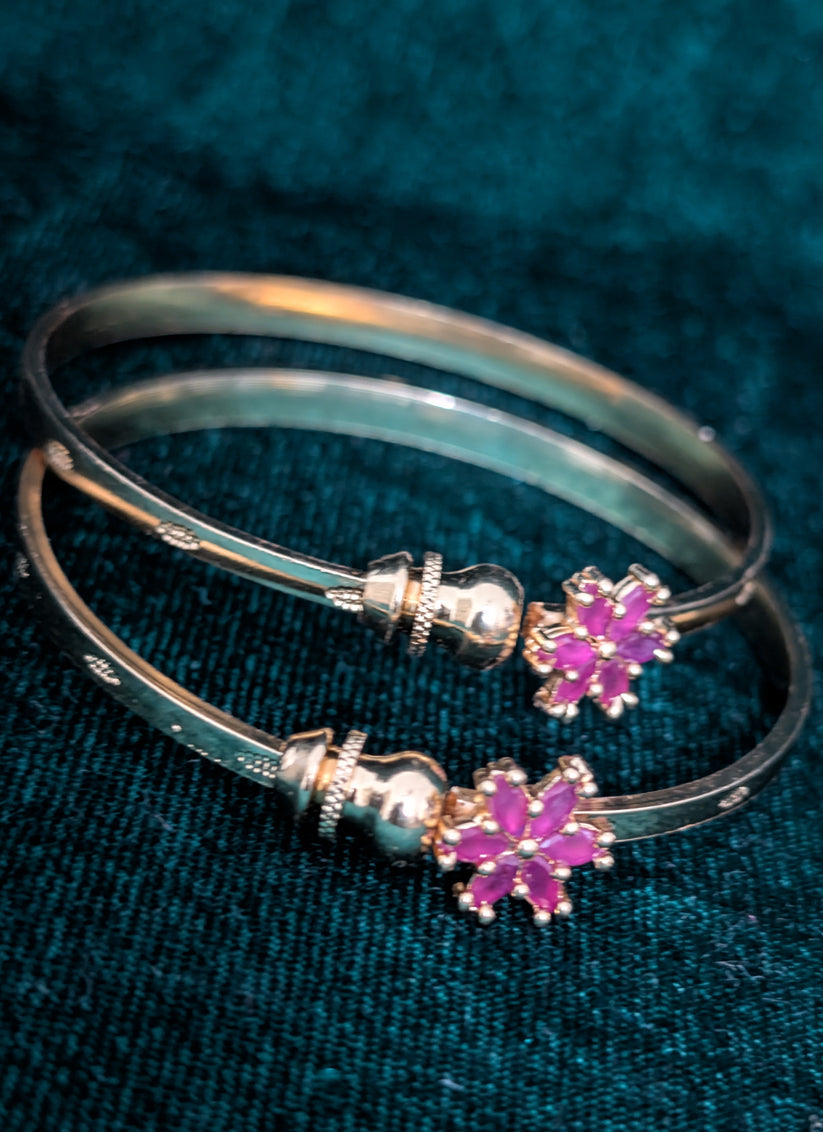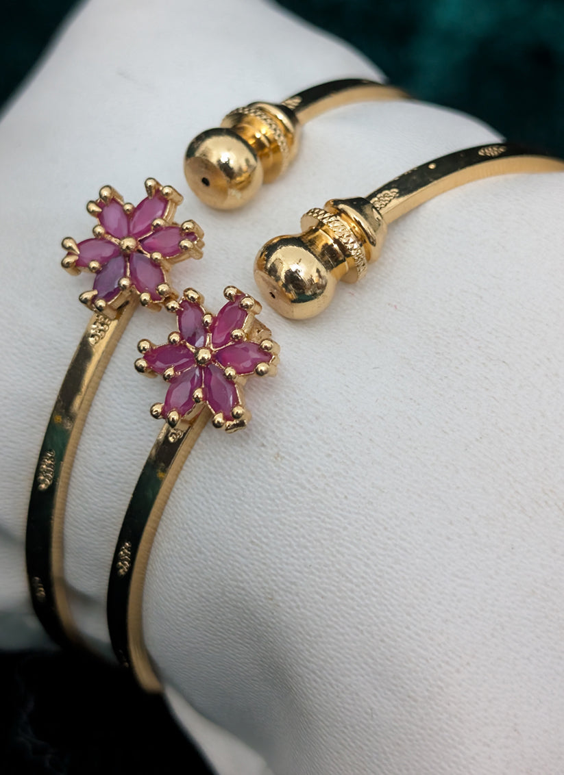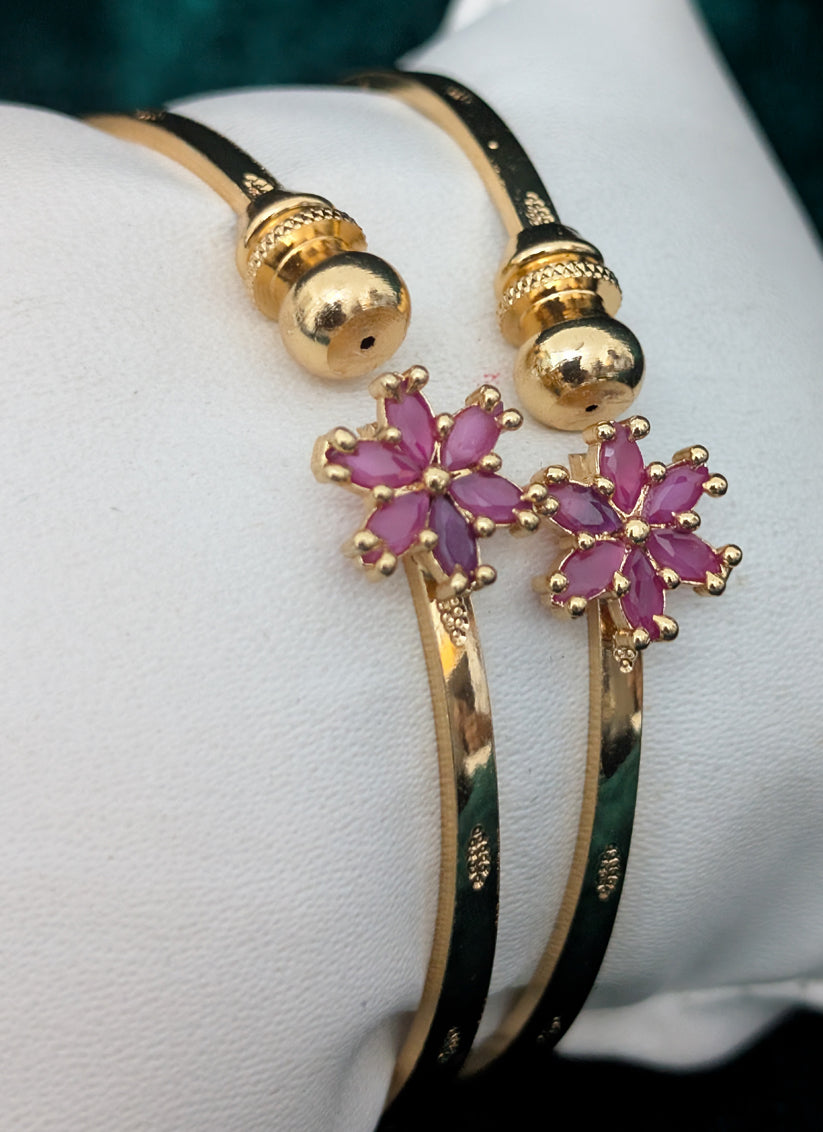 Rose Flowerish AD Gold Plated Brass Freesize Bangles