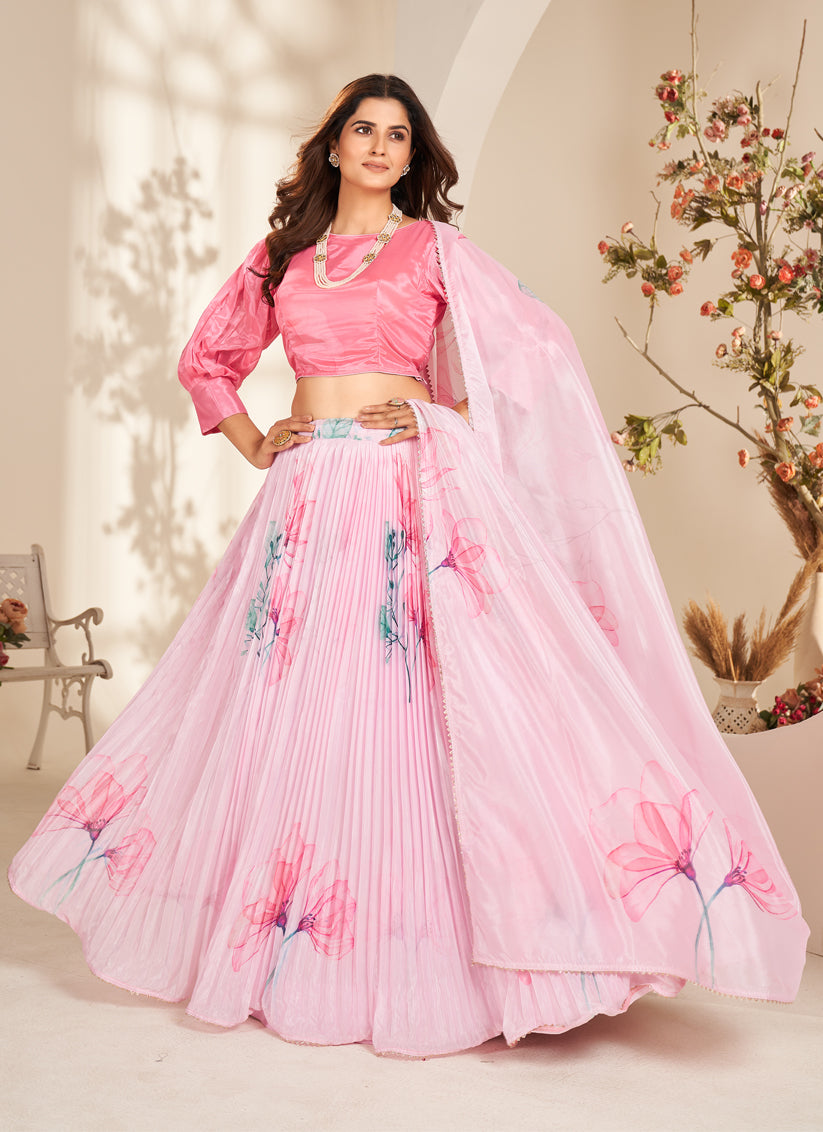 Rose Pink Pure Organza Readymade Lehenga Choli