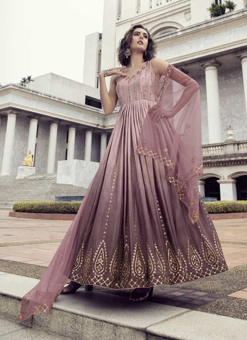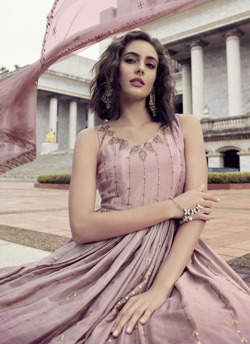 Rose Taupe Chinnon Embroidered Gown with Dupatta