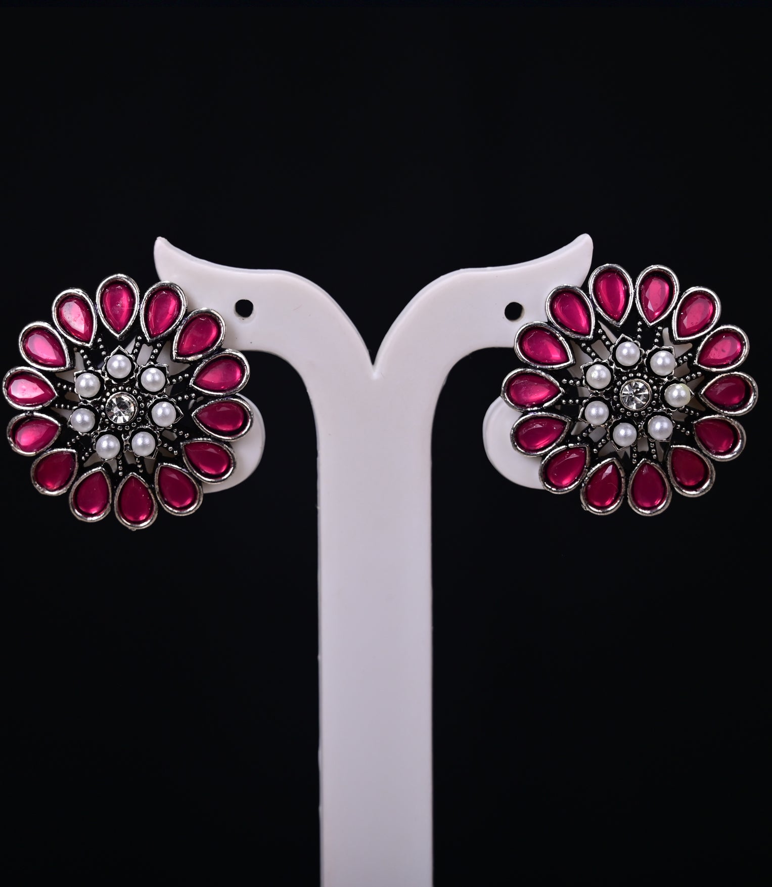 Full classy and traditional earring set silver tone earring set with pink stone and white pearl from the house of TDO , perfect for all occasions. It gives beautiful look. You can use it various outfit like any weddings, function, or any ceremony.