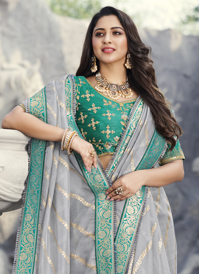 Work: Heavy weaving work patch border with embroidery work on blouse