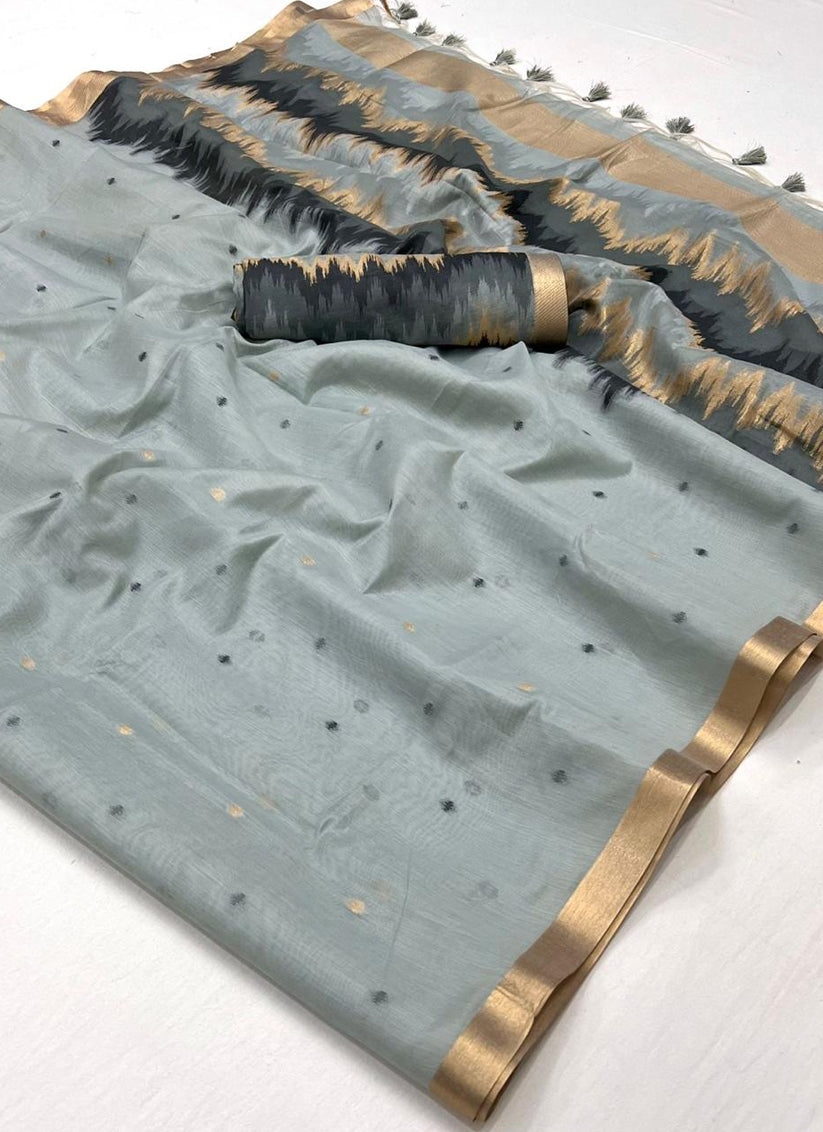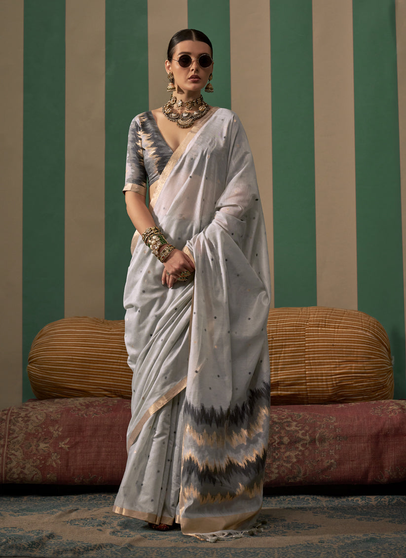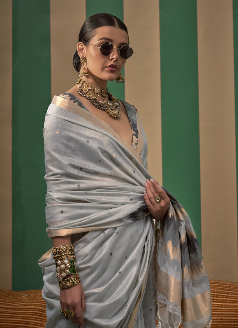 Sky Grey Spun Handloom Silk Weaving Festival Saree