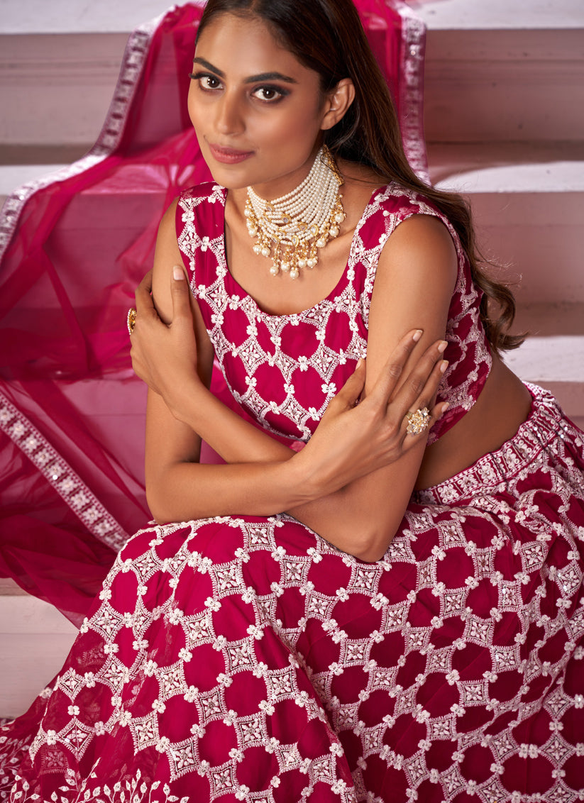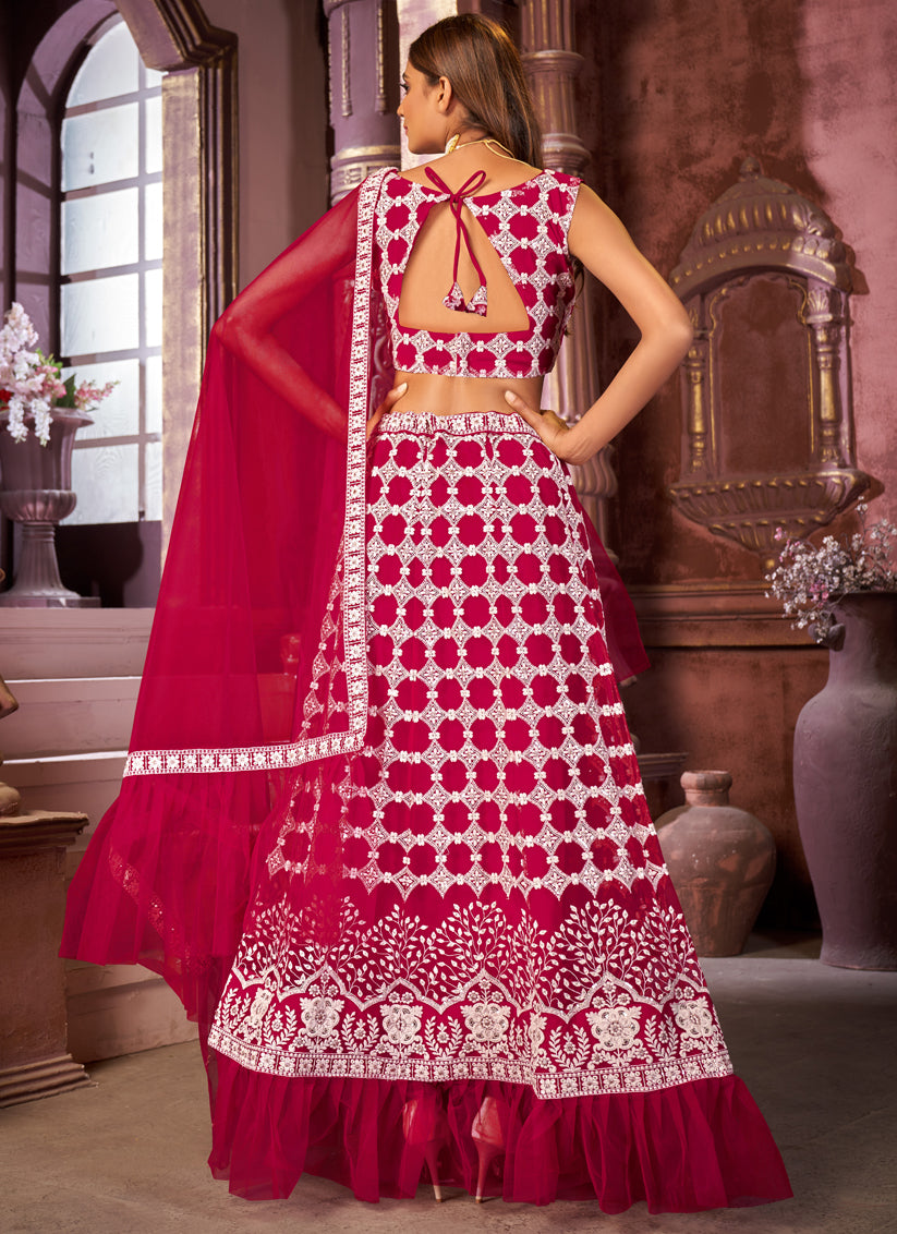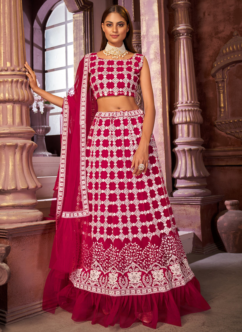 Strawberry Pink Net Embroidered Designer Lehenga Choli