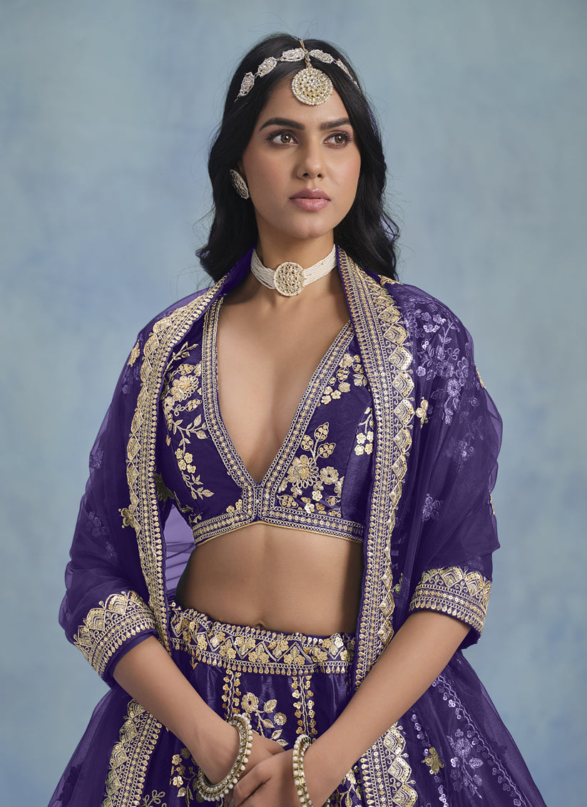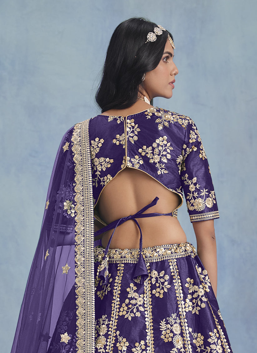Violet Art Silk Sequins Embroidered Lehenga Choli Set