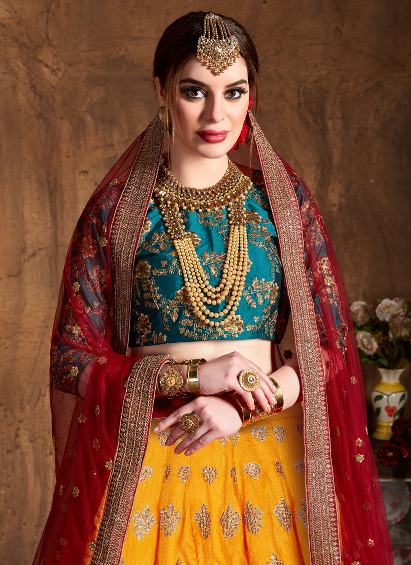 Yellow Banarasi Silk Embroidered Designer Lehenga Choli